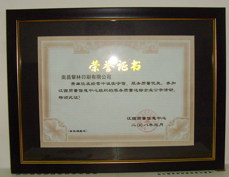 熱烈祝賀南昌擎林印刷有限公司評(píng)為首屆南昌市誠信單位!